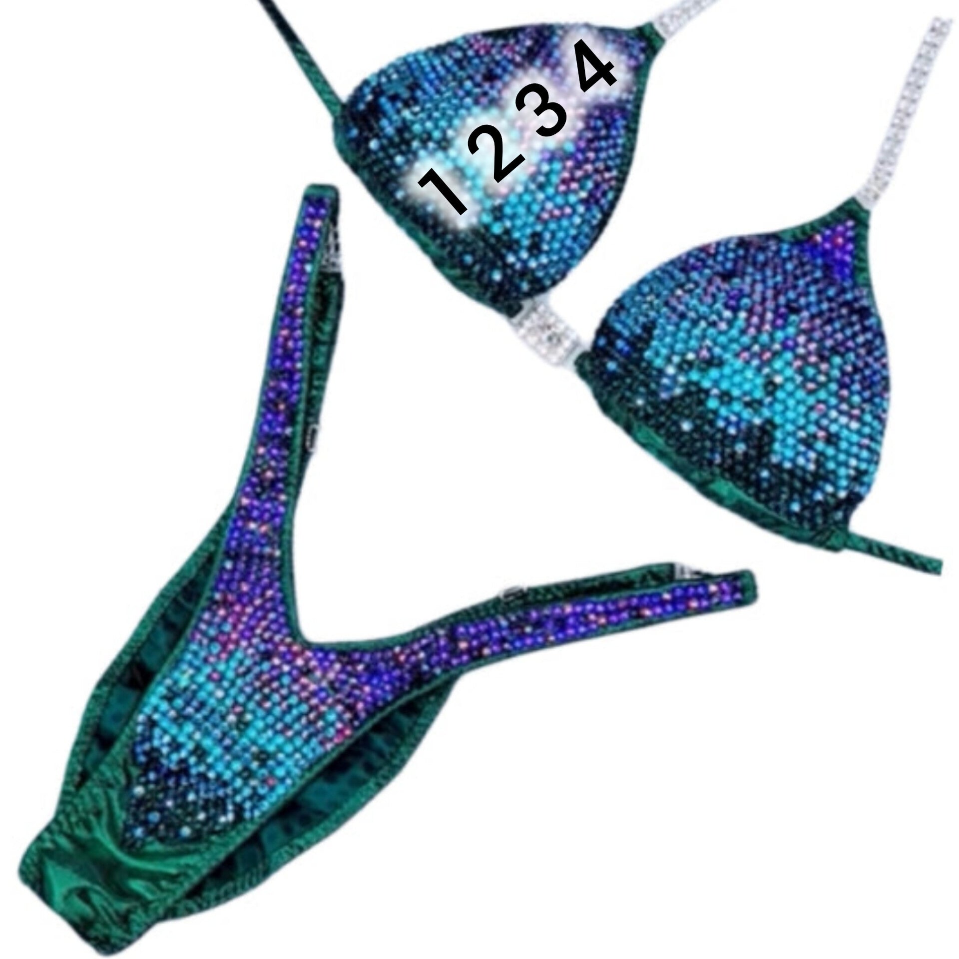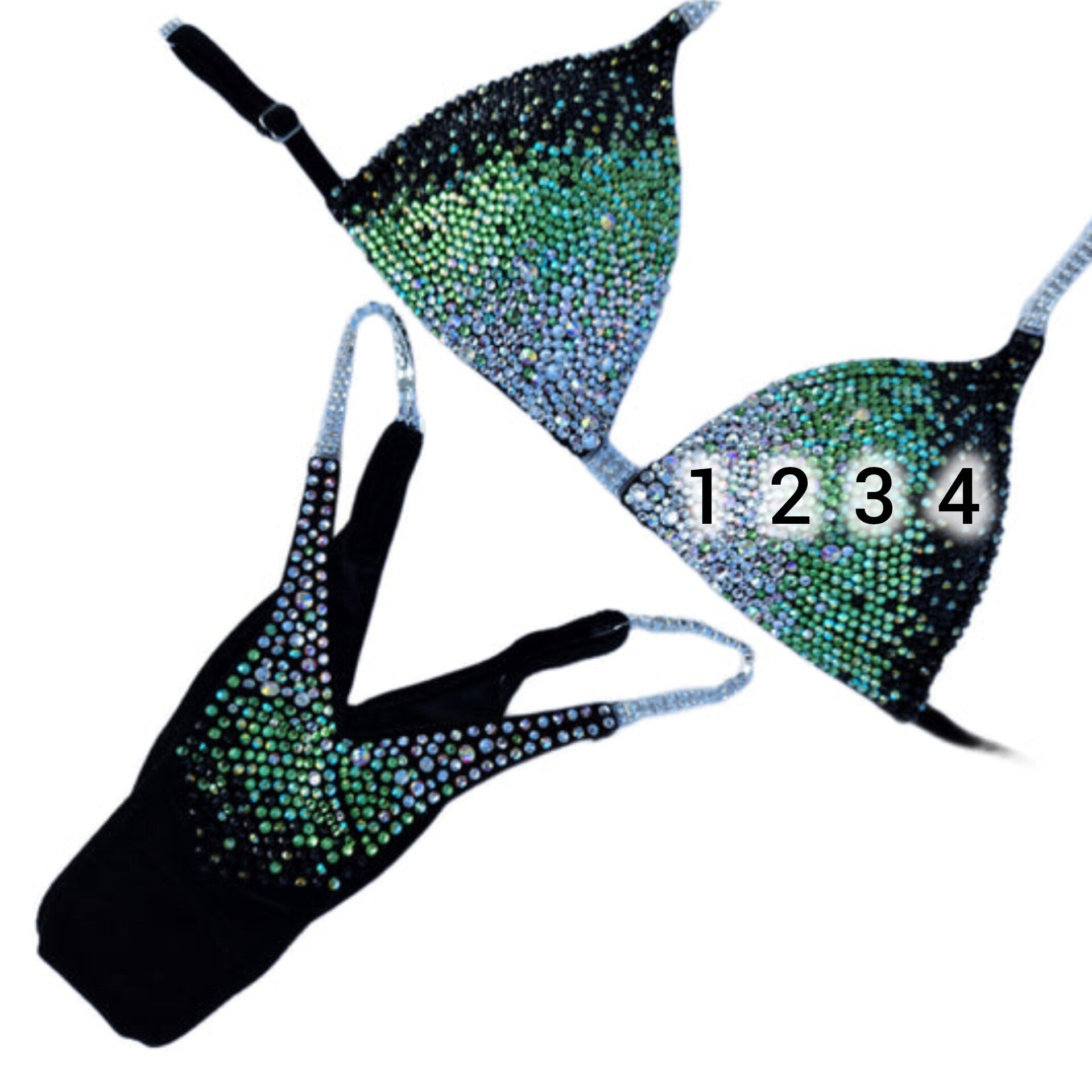 Design your unique Ombre by selecting your preferred fabric and picking four crystals from our wide variety of shimmering options. You'll answer a series of questions to personalize your one-of-a-kind suit.