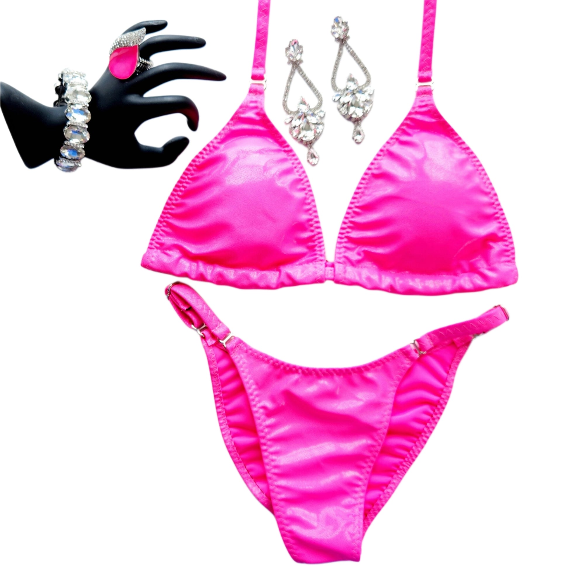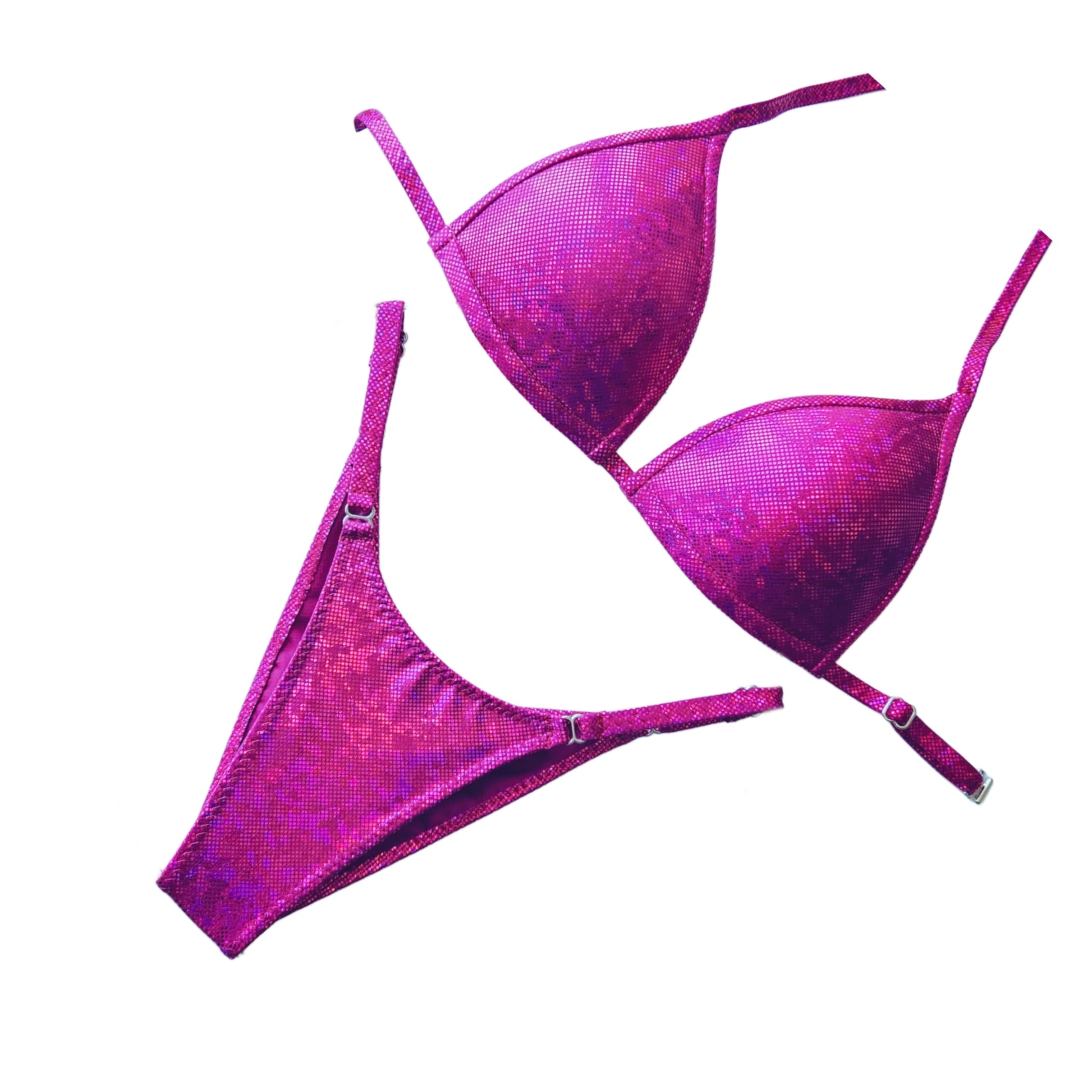 Step on stage with confidence in our Fit Model Competitor Suit, designed to meet league guidelines while showcasing your physique at its best. All options for this division are made from premium 4 way stretch luxury fabric. This is true for both options offered- Spandex and Metallic Spandex. The sleek, solid-color suit keeps the focus on your hard work.