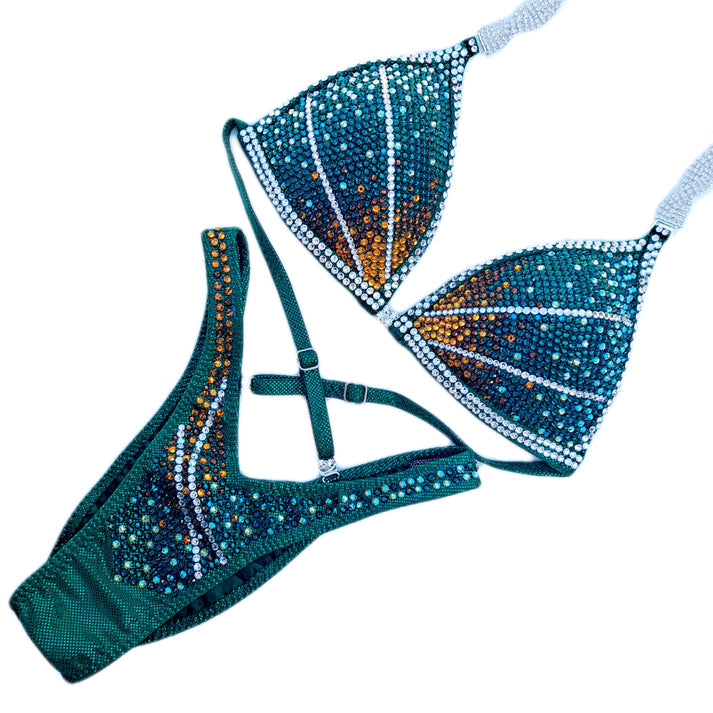 Our Prestige Ornate Designs have been created by our expert team of designers for a flawless stage appearance. Eliminate guesswork and purchase with confidence as our carefully chosen fabrics and muti-faceted crystals create a mesmerizing effect.