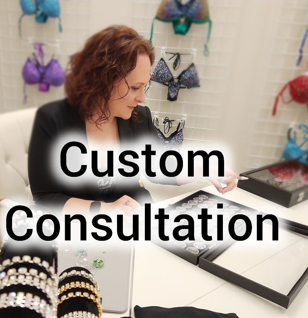 An iCandy Designer will help you create your dream competition suit with from anywhere. In your 60-minute Google Meet session, we’ll cover style, fabric, fit,and crystal options, plus take precise measurements. (Please have a soft tape measure handy). Your suit will be shipped for a try-on fitting for your approval before crystals are applied, ensuring a perfect fit for the stage.